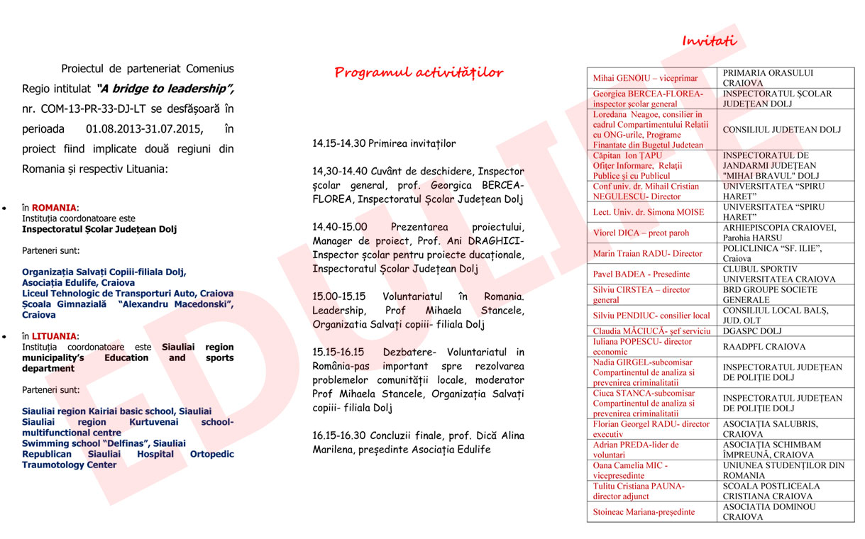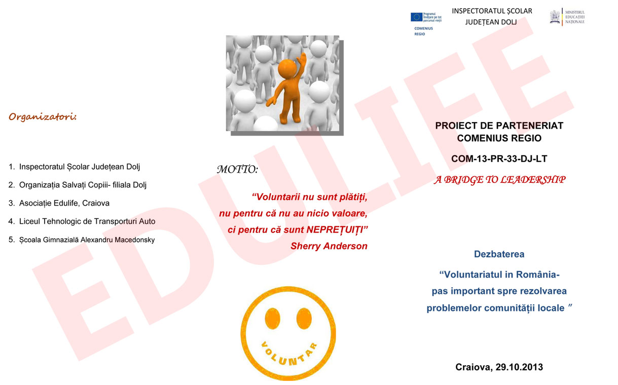 Instituția coordonatoare este Inspectoratul Școlar Județean Dolj